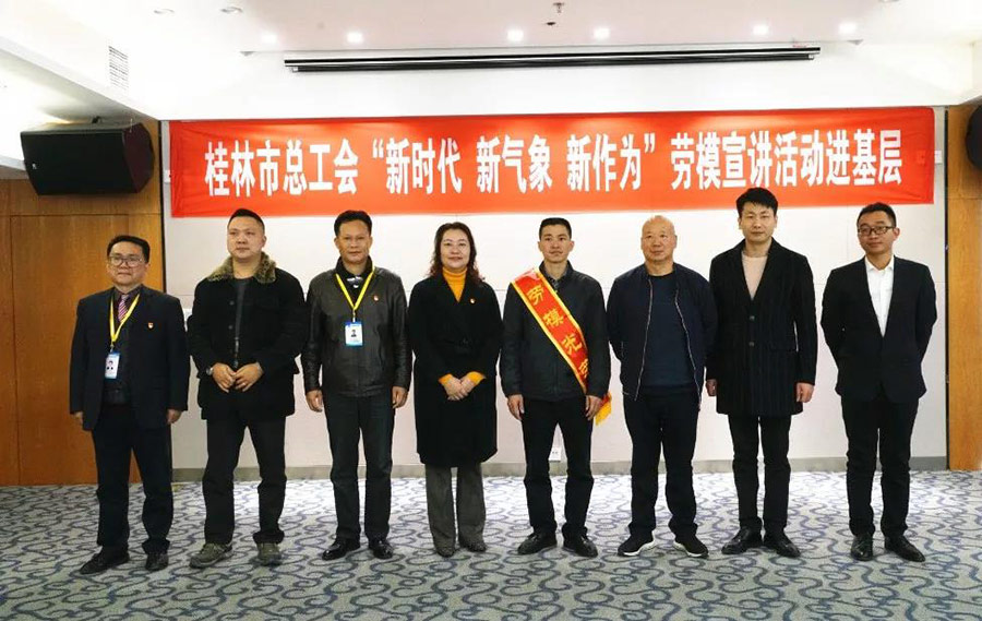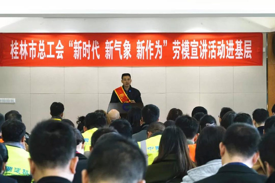 恰逢全國(guó)上下學(xué)習(xí)貫徹習(xí)近平總書記同中華全國(guó)總工會(huì)新一屆領(lǐng)導(dǎo)班子成員重要講話精神、隆重慶祝改革開放40周年和自治區(qū)成立60周年之際,11月22日上午,新城投資集團(tuán)工會(huì)委員會(huì)在新城商務(wù)酒店辦公樓十樓會(huì)議廳舉辦了“新時(shí)代,新氣象,新作為”勞模宣講活動(dòng)。市總工會(huì)黨組成員、財(cái)貿(mào)工會(huì)主席劉寶成等領(lǐng)導(dǎo)以及市總工會(huì)代表、新區(qū)管委黨群團(tuán)代表、市文投集團(tuán)代表、新城投資集團(tuán)代表及中建八局二公司廣西公司桂林基地項(xiàng)目代表參加了宣講會(huì),會(huì)議由新城投資集團(tuán)黨支部委員、工會(huì)主席譚力源主持。