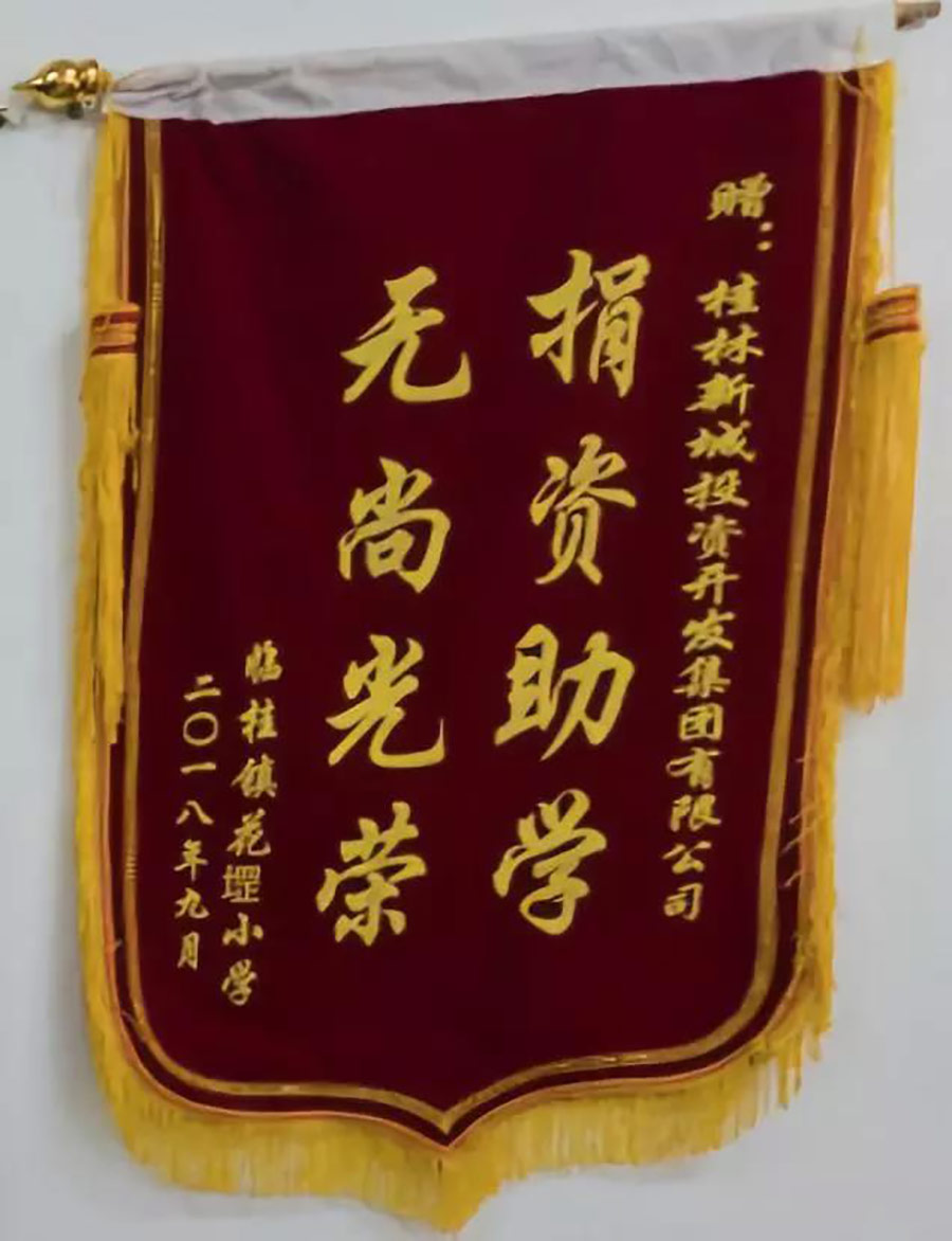 2018年9月18日上午,臨桂鎮(zhèn)花堽小學校長秦開勝、黨支部書記秦海燕將一面印有“捐資助學,無尚光榮”的錦旗送到新城投資集團。集團公司黨支部書記周道林、集團經營班子、支部委員一起接受錦旗。