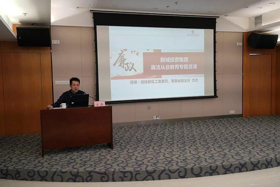 為了增強(qiáng)國企工作人員廉潔從業(yè)意識(shí),筑牢拒腐防變的思想防線,1月30日下午,臨桂新區(qū)工委委員、管委會(huì)副主任文杰在新城投資集團(tuán)辦公樓1001會(huì)議室上了一堂題為《廉潔從業(yè)教育》專題黨課,為集團(tuán)公司全體黨員干部職工在年關(guān)到來之際,把好廉潔“節(jié)點(diǎn)關(guān)”,以案例警示教育作廉潔提醒。集團(tuán)公司領(lǐng)導(dǎo)班子、全體黨員、預(yù)備黨員、主管及以上人員、子公司負(fù)責(zé)人、發(fā)展對(duì)象、入黨積極分子參加了本次黨課學(xué)習(xí)。