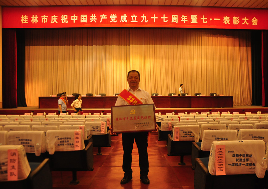 2018年6月29日上午,在桂林市直機(jī)關(guān)小禮堂舉行的桂林市慶祝中國(guó)共產(chǎn)黨成立九十七周年暨七·一表彰大會(huì)上,表揚(yáng)了全市先進(jìn)基層黨組織、優(yōu)秀共產(chǎn)黨員、優(yōu)秀黨務(wù)工作者,新城投資集團(tuán)黨支部榮獲“桂林市先進(jìn)基層黨組織”稱號(hào),黨支部書記周道林代表新城投資集團(tuán)黨支部參加了此次表彰大會(huì)。