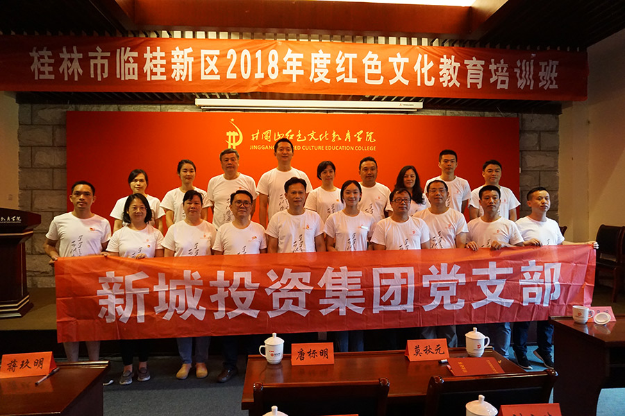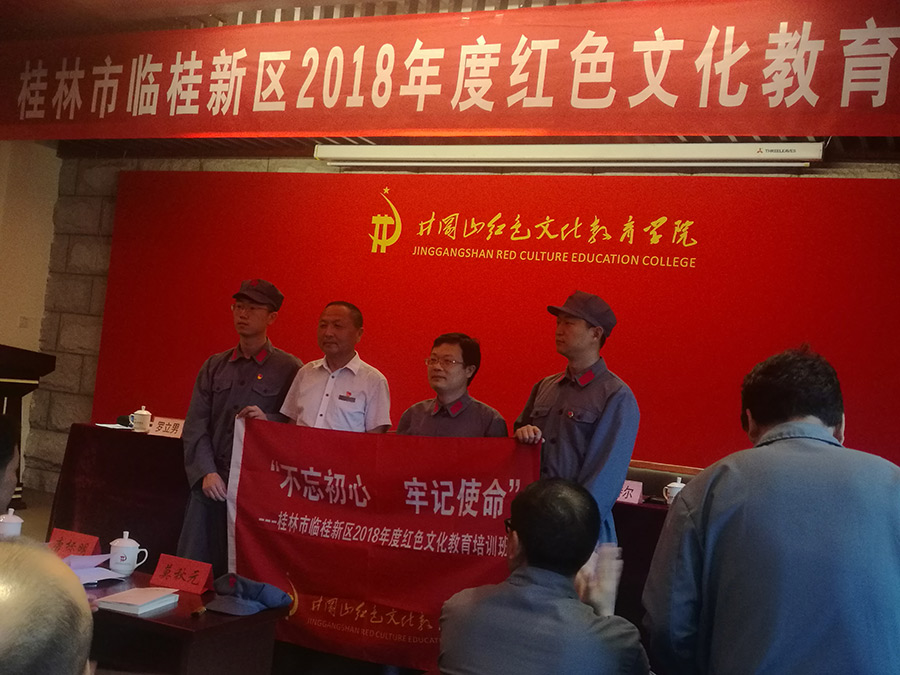 為認真貫徹落實《干部教育培訓(xùn)工作條例》,抓好黨員干部隊伍建設(shè),培養(yǎng)和造就一支高素質(zhì)的黨員干部隊伍,進一步強化臨桂新區(qū)黨員干部黨性思想、紅色文化思想教育,在中國共產(chǎn)黨成立97周年前夕,臨桂新區(qū)工委組織新區(qū)黨員干部、新城投資集團黨員干部,于5月26日前往井岡山紅色文化教育學(xué)院,開展為期5天的以“不忘初心,牢記使命”為主題的紅色文化教育培訓(xùn)。參加第一期教育培訓(xùn)的學(xué)員共計46人。臨桂新區(qū)工委副書記唐標明、工委委員李星明、 工委委員蔣玖明、工委委員莫秋元、新區(qū)管委黨總支副書記李鋒、新城投資集團黨支部副書記鄧仁友均以普通黨員身份參加第一期紅色文化教育培訓(xùn)。