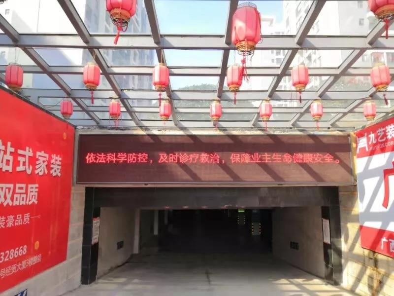 ▲新城國(guó)奧小區(qū)項(xiàng)目利用LED屏幕宣傳防疫信息。并對(duì)出入門把手、電梯按鍵、兒童娛樂設(shè)施等消毒。