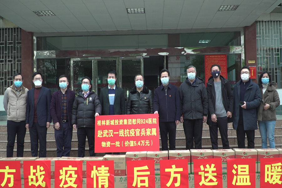 為貫徹落實(shí)習(xí)近平總書記關(guān)于務(wù)必高度重視對醫(yī)務(wù)人員的保護(hù)、關(guān)心、愛護(hù),從各個(gè)方面提供支持保障,使他們始終保持強(qiáng)大戰(zhàn)斗力、昂揚(yáng)斗志、旺盛精力,持續(xù)健康投入戰(zhàn)勝疫情斗爭的指示精神,2月21日早上9點(diǎn)30分,桂林警備區(qū)、新城投資集團(tuán)在第九二四醫(yī)院辦公樓舉行了“慰問九二四醫(yī)院赴武漢一線抗疫官兵家屬”捐贈儀式。桂林警備區(qū)司令員劉禮智,九二四醫(yī)院院長肖慶、政委易振林,臨桂新區(qū)工委委員、管委會副主任文杰,新城投資集團(tuán)黨支部書記、董事長周道林參加活動。