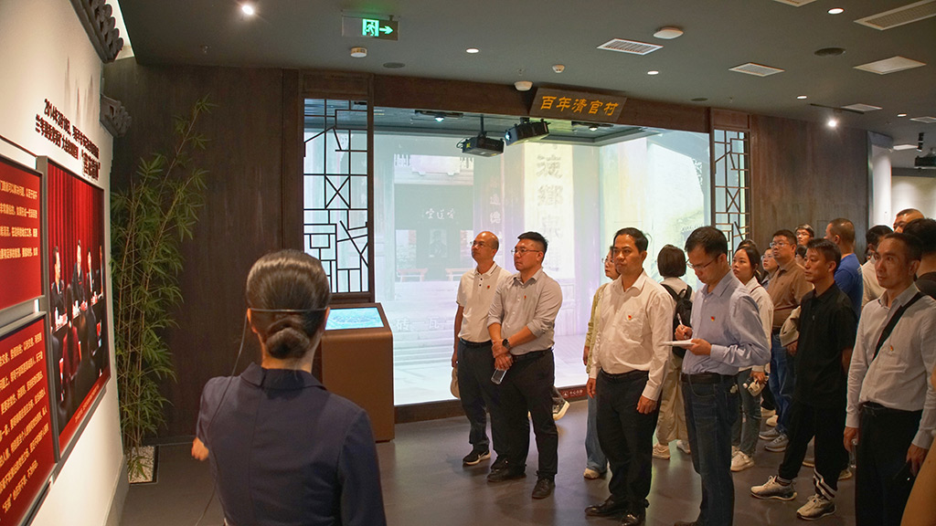 黨課結束后,駐桂林市工作隊與新城投集團全員在講解員的帶領下,依次參觀了廣西家教家風基地先賢家風、紅色家風、時代先鋒展廳。通過觀看一系列珍貴的歷史照片、泛黃的家書以及深刻的家訓,仿佛與古代先賢、革命前輩時空對話,領悟他們堅定信念和崇高品德,深刻感受家風家教在傳承紅色基因、弘揚革命精神中的重要作用。大家紛紛表示,基地中蘊含的家教智慧、廉政思想和優(yōu)良家風,值得如今每一個“小家”借鑒弘揚。陳湛林以《靈川古韻頌家風》為題賦詩一首,表達自己的所思所想、所感所悟?!办`川大地映晴空,江頭村內(nèi)訪古蹤。家風淳厚傳千古,示范基地蘊德濃。碧瓦紅墻話廉政,碑文石刻醒心胸。子孫后代當自勵,清廉家訓永相從?!?/span>