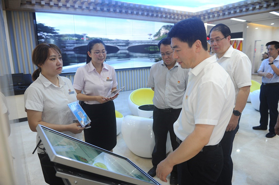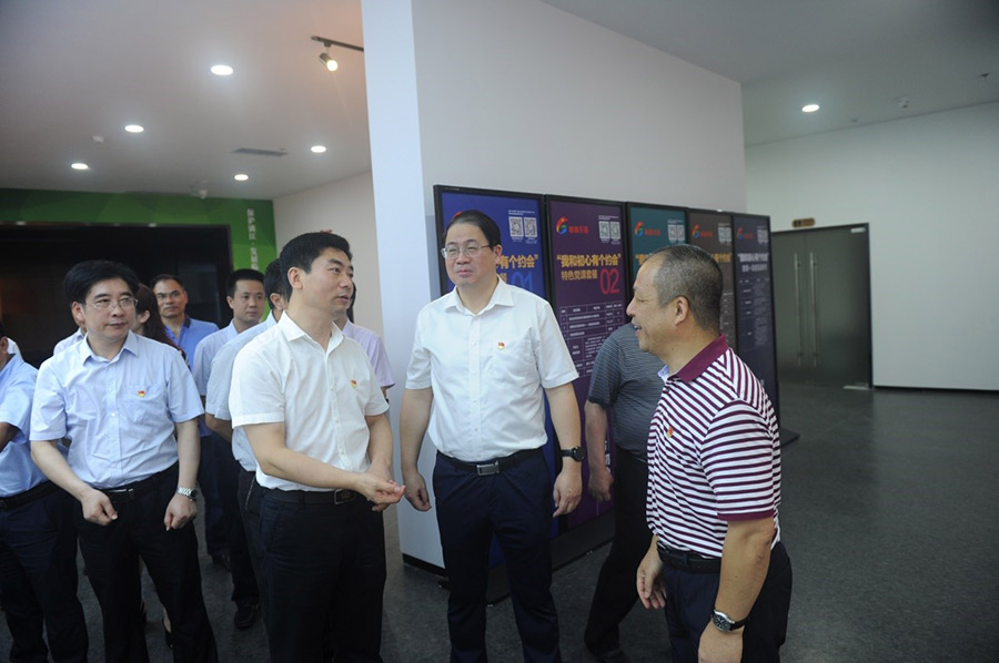 2019年7月1日,在中國共產(chǎn)黨建黨98周年到來之際,桂林市委副書記白松濤一行專程到桂林市黨群服務(wù)中心調(diào)研指導(dǎo)試運行情況。市委常委、組織部部長、市黨群服務(wù)中心建設(shè)工作領(lǐng)導(dǎo)小組組長彭東光陪同調(diào)研。
