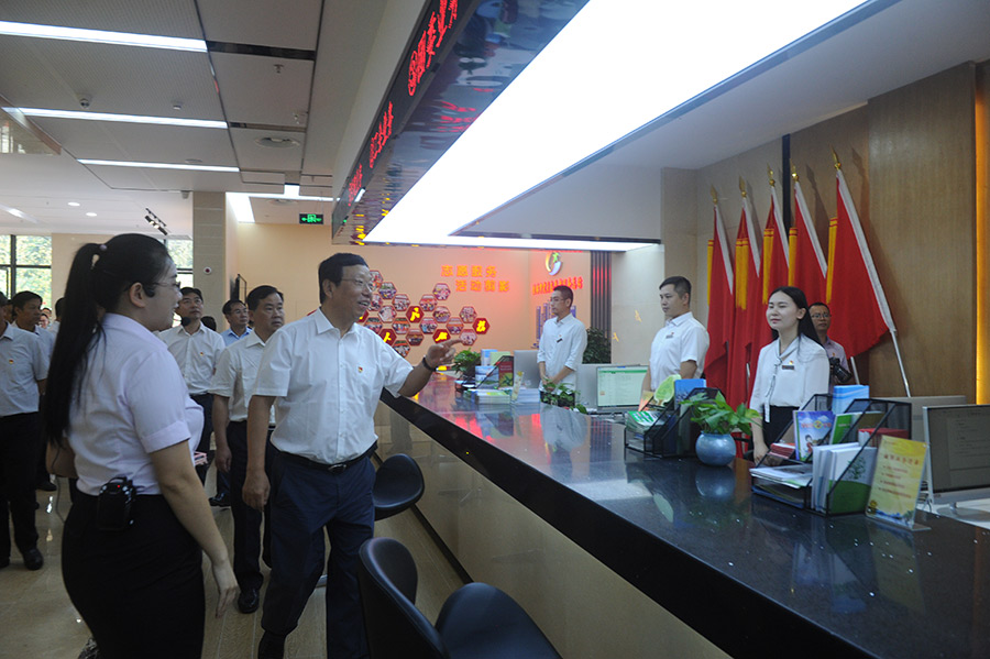趙樂秦、秦春成一行參觀黨群業(yè)務(wù)受理區(qū)