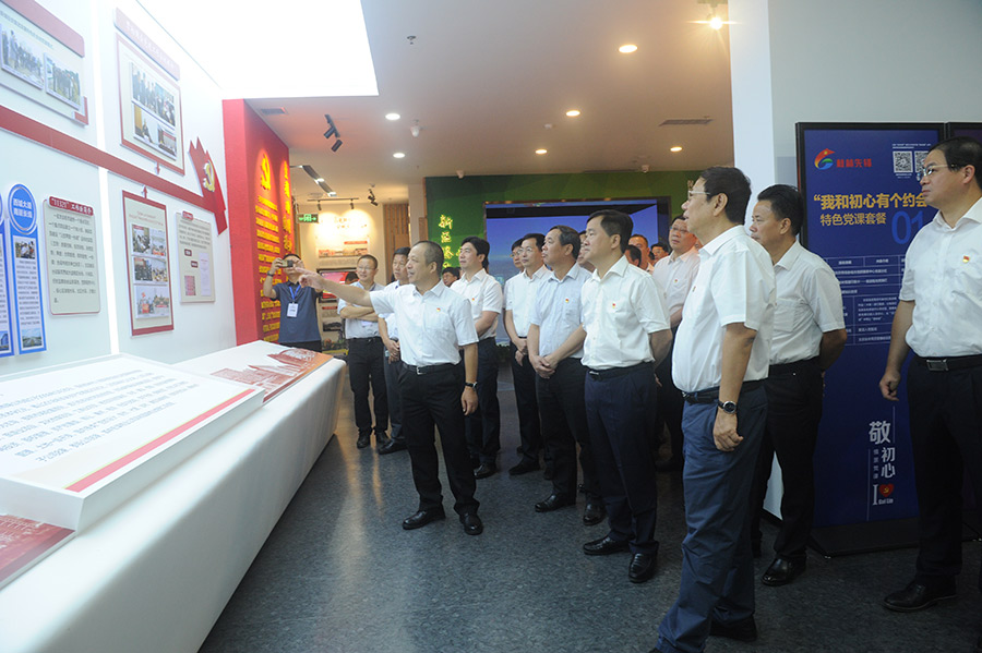 在桂林新城投資集團展區(qū),趙樂秦對新城投資集團在項目建設(shè)過程中提出的“11321工作法”產(chǎn)生濃厚興趣,集團黨總支籌備工作領(lǐng)導(dǎo)小組組長、董事長、總經(jīng)理周道林詳細匯報“11321工作法”的內(nèi)涵和具體做法,趙樂秦充分肯定了新城投資集團黨總支將毛澤東同志創(chuàng)造的“支部建在連上” 的黨建思想靈活運用到項目建設(shè)管理中去,既傳承紅色基因,又強有力的推動項目建設(shè)。趙樂秦殷切希望新城投資集團黨總支繼續(xù)發(fā)揚真抓實干的作風、譜寫臨桂新區(qū)建設(shè)的新篇章。