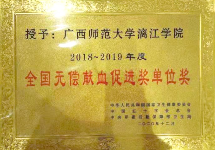 6月9日,由桂林市獻血委員會、桂林市衛(wèi)生健康委員會、桂林市紅十字會、中國人民解放軍聯(lián)勤保障部隊桂林聯(lián)勤保障中心衛(wèi)勤處主辦,桂林市中心血站、廣西師范大學漓江學院承辦的“喜迎建黨100周年桂林市慶祝2021年世界獻血者日無償獻血表彰文藝匯演”活動在漓江學院召開。漓江學院獲得全場唯一“全國無償獻血促進獎單位獎”。